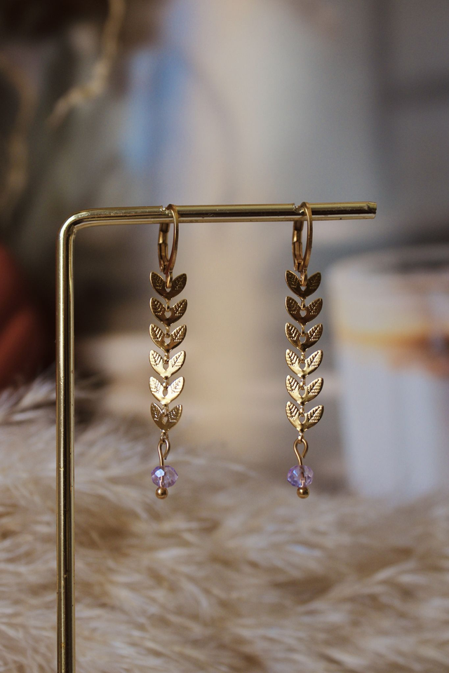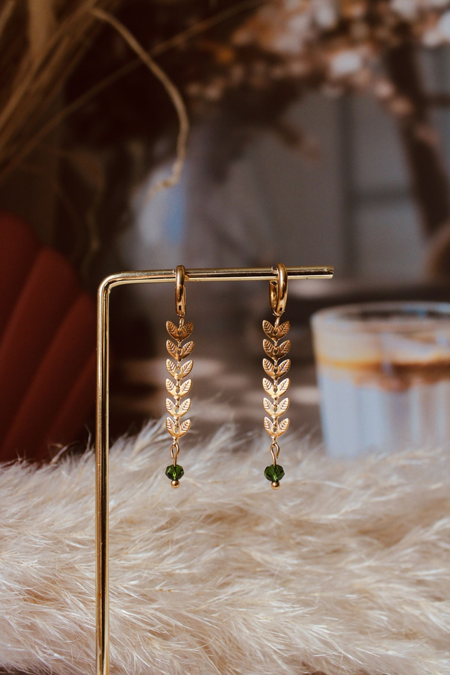 Inspirées par la délicatesse des feuillages, ces boucles d'oreilles allient finesse et poésie. Chaque détail des feuilles dorées apporte une touche naturelle et sophistiquée, avec une subtile note de couleur 😍