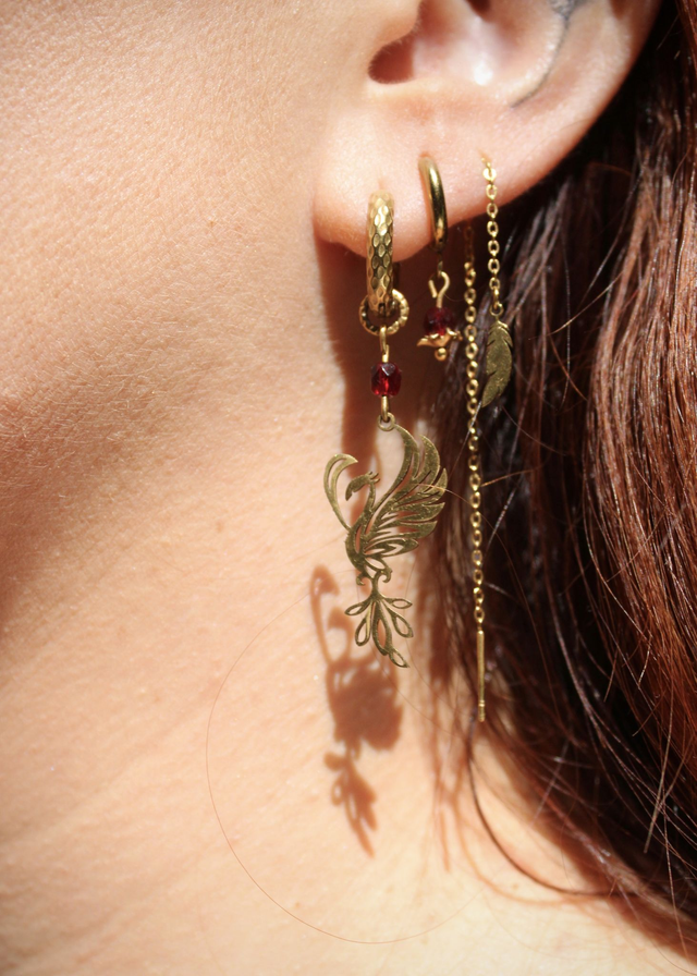✨ Le petit plus : les dormeuses travaillées peuvent se porter seules pour un look épuré, ou avec les pendentifs Phœnix pour un style audacieux et envoûtant.
