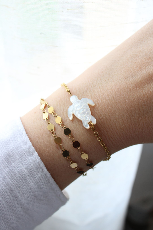 Plongez dans un univers apaisant avec ce bracelet, délicatement orné d’une tortue en coquillage naturel. Symbole de sagesse, de longévité et de protection, la tortue vous rappelle de prendre le temps, et de profiter de chaque instant ✨