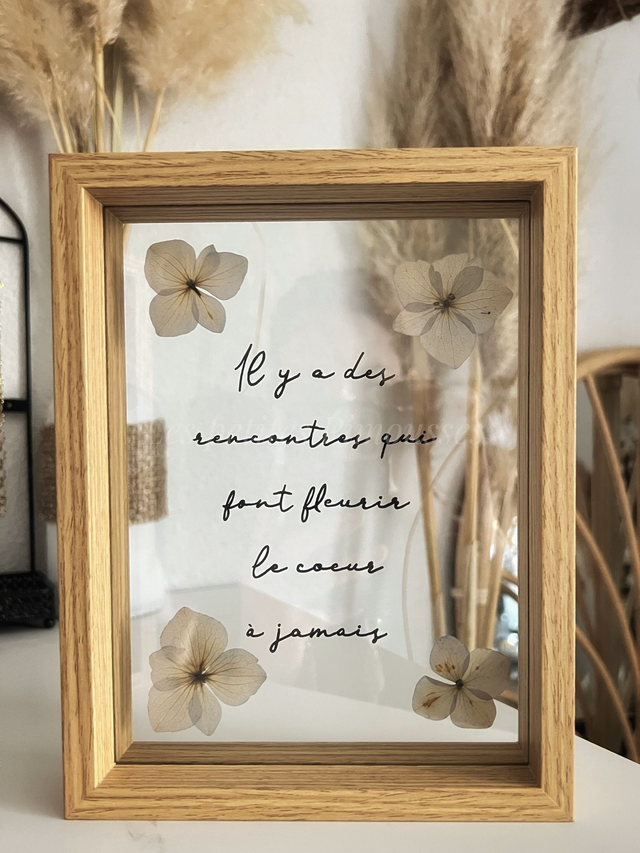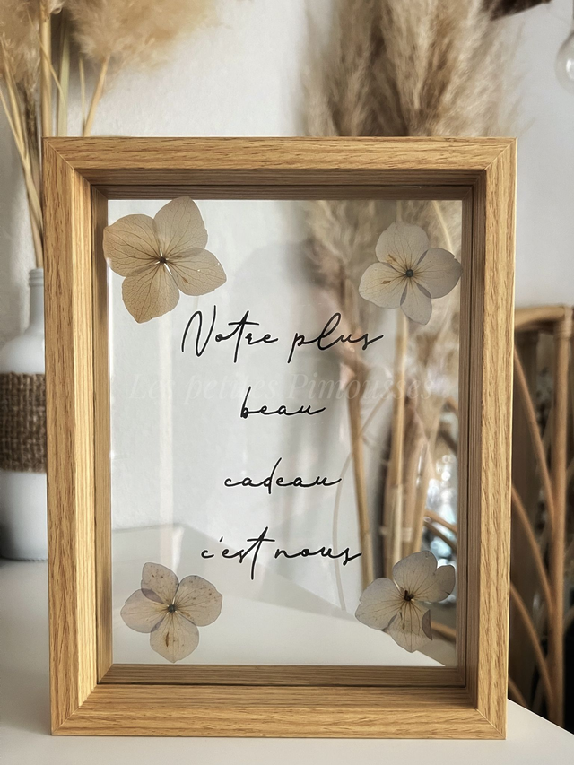 Un cadre unique fait main avec de véritables fleurs séchées, rempli d’émotion et d’amour !