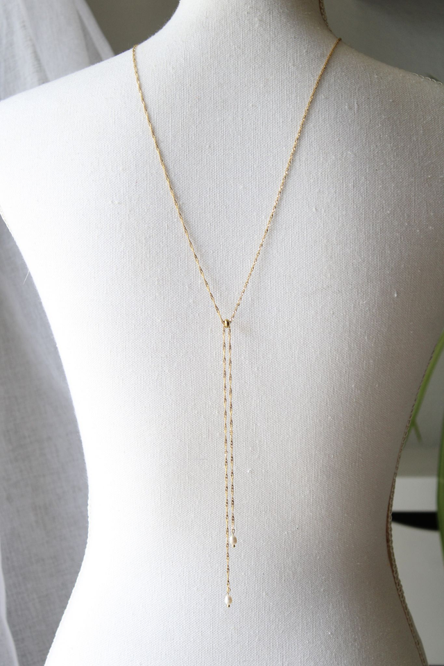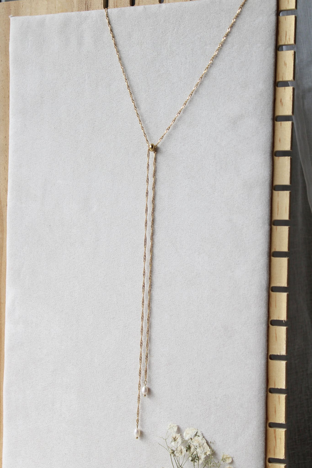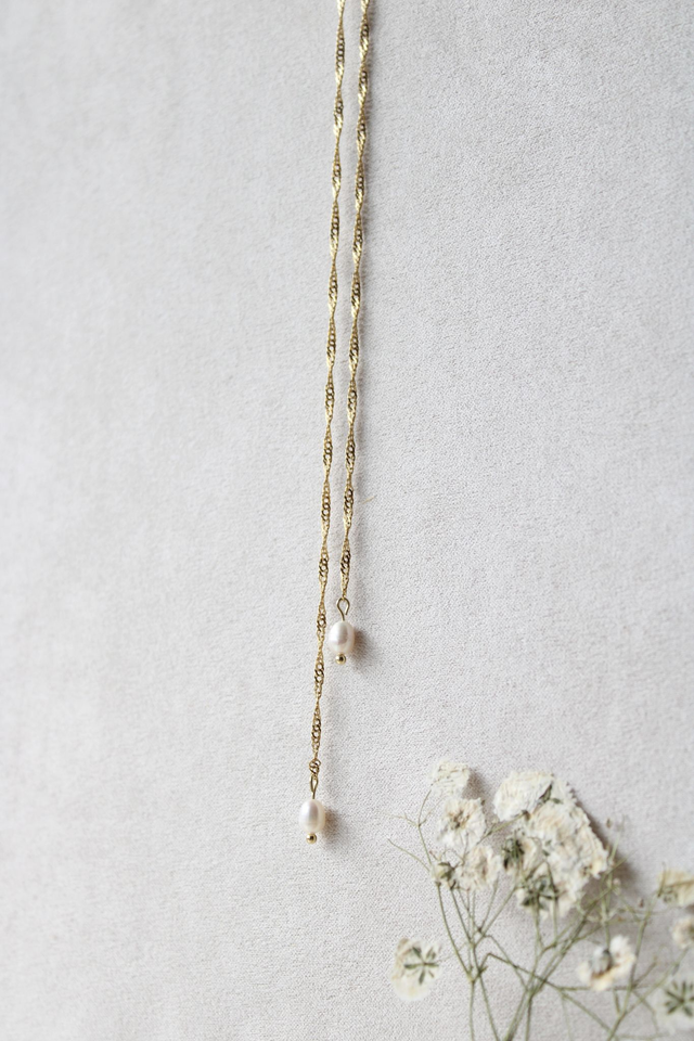 Sublimer chaque mouvement avec ce collier en maille torsadée et ses deux perles d'eau douce qui viennent délicatement orner le bas du dos ✨
