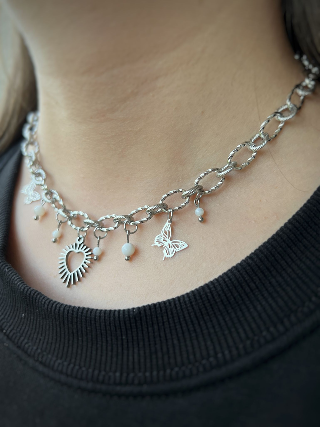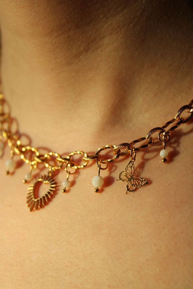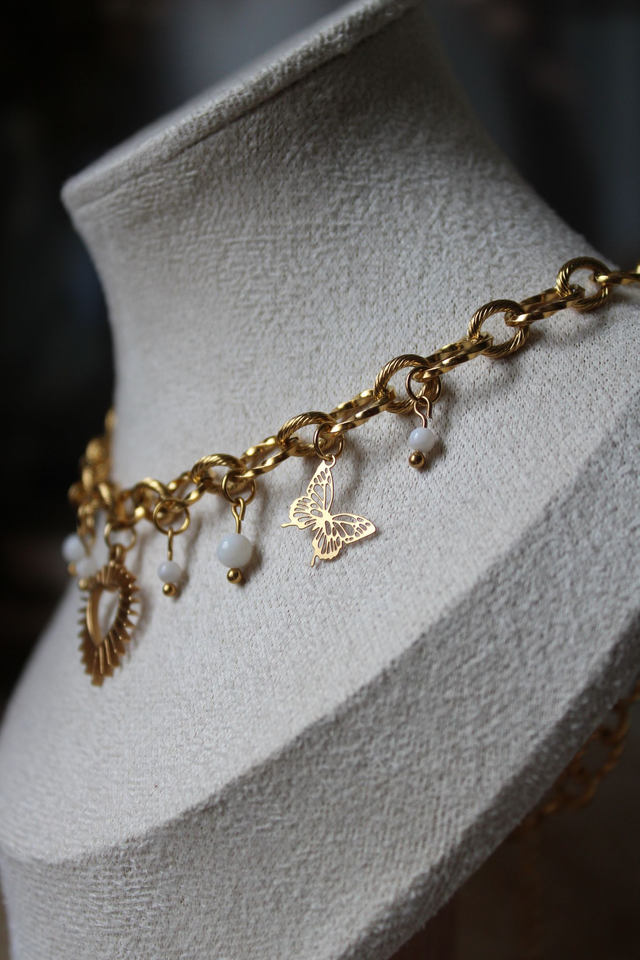 Bien plus qu’un bijou : c’est une déclaration d’amour envers vous-même. Orné d’un cœur pour symboliser l’amour, de papillons représentant la transformation et la renaissance, et de perles de coquillages évoquant la douceur et la résilience, ce collier vous invite à vous recentrer sur vous-même. Après chaque épreuve, il est essentiel de se retrouver, de se reconstruire et d’avancer avec confiance. Ce bijou délicat et poétique est un hommage à votre force intérieure et à votre capacité à renaître, encore et encore.