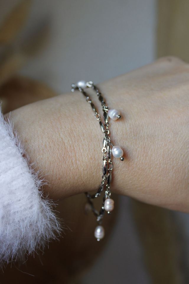 • Matériaux : Acier inoxydable & véritables perles d'eau douce